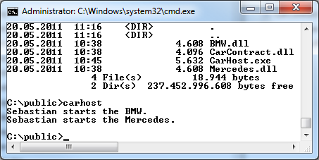 Wohl wird ein Ordner public angelegt aus dem ich die CarHost.exe aufrufen kann und es auch funktioniert ABER es fehlt die CarContract.dll.