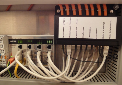 Die Ethernet Kabel habe ich ebenfalls in die Unterverteilung verlegt. Auch hierfür gibt es entsprechende Ethernet-Switche, die über den notwendigen ‘Formfaktor’ verfügen.