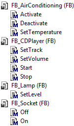 | Receiver | Dieses sind die FBs, die die jeweiligen Empfänger (Receiver) der Befehle repräsentieren; also FB_Socket, FB_Lamp, … |