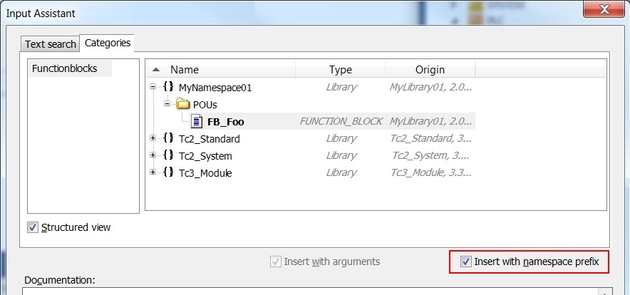 PROGRAM MAIN VAR fbFoo1 : MyNamespace01.FB_Foo; fbFoo2 : MyNamespace02.FB_Foo; fbFoo3 : FB_Foo; END_VAR