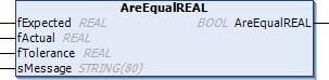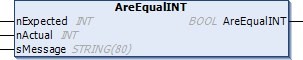 All standard data types (BOOL, BYTE, INT, WORD, STRING, TIME, …) have corresponding assert methods. Some special data types, such as AreEqualMEM for checking a memory area or AreEqualGIUD, are also supported.