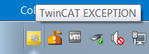 Because this leaves the program in an undefined state, runtime errors cause the system to halt. This is indicated by the yellow TwinCAT icon: