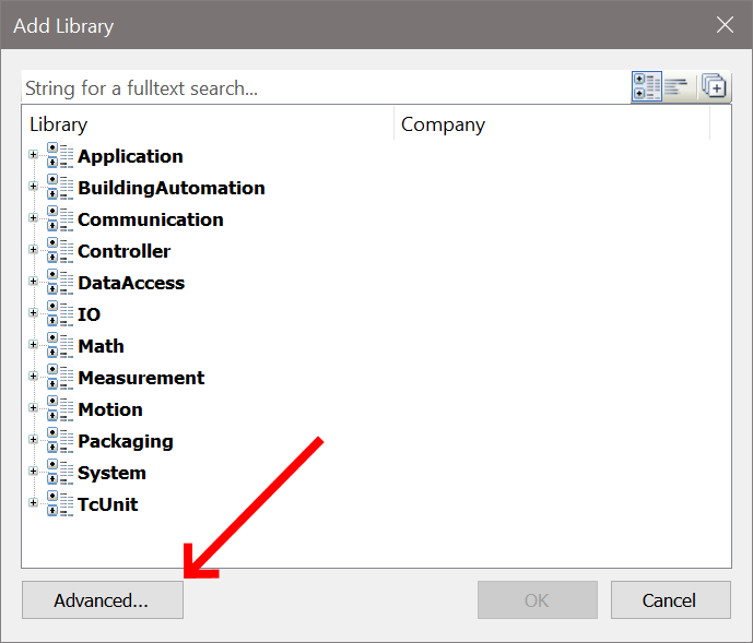 Öffnen Sie den Dialog zum Hinzufügen einer Bibliothek. Wechseln Sie anschließend in die erweitere Ansicht.