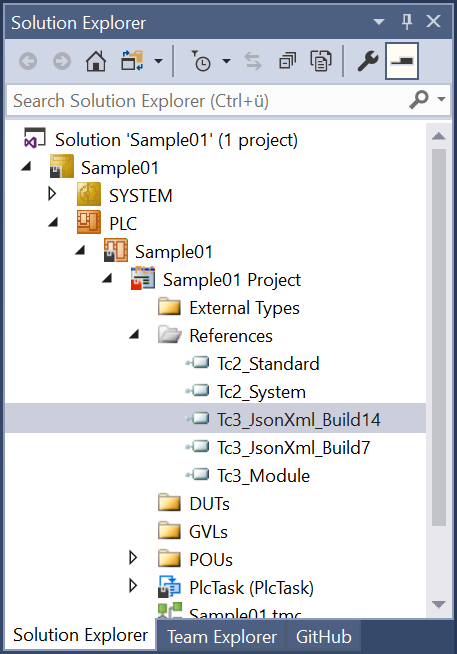 Wie mehrere Versionen der gleichen Bibliothek in einem Projekt eingebunden werden, will ich in dem folgenden, kurzen Post vorstellen. Bei unserem Beispiel werde ich zwei verschiedene Versionen der Tc3_JsonXml Bibliothek in ein Projekt hinzufügen. Auf meinen Rechner sind aktuellen drei verschiedene Versionen der Bibliothek vorhanden.