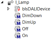 Für FB_LampSetDirectDALIAdapter wird in der Methode FB_init() die Backing-Variable der Eigenschaft bIsDALIDevice auf TRUE gesetzt.